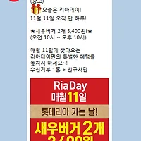 롯데리아 새우버거 2개 3400원 / 리아데이 행사 구입후기 (0) | 2016.11.11 |