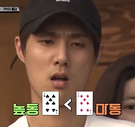 소사이어티 게임 2, 학진 연합 8회 탈락자 고우리 2017년 10월 13일 금요일 방송 소사이어티게임2, 8회.게임은 '챌린지, 기억의 홀덤' 이라는 포카 게임 이었다.결과는 마동 승리, 높동 패.마동의 플레이어는 조준호, 높동의 플레이어는 장동민.5분 이라는 시간동안 카드 위치를 기억해야하는 팀원 각각 두명씩 배치가 되고, 공유카드 세장이 깔린 후, 암기를 한 팀원이 뽑아주는 카드 두장을 쥐고 배팅을 시작하는 게임이다.포카는 원래 상당한 심리게임이고 전략게임인데 이건 플레이어의 전략보다는 암기를 담당하는 사람의 역할이 너무나 크게 좌우되는 거라서 좀 짜증났다. 마동 패는 기본이 스트레이트 이상으로 계속 뽑아주고 있는데 , 높동은 투페어, 트리플 이러고 있으니.뽑아주는 패만으로는 승부를 못보겠다 싶었으..